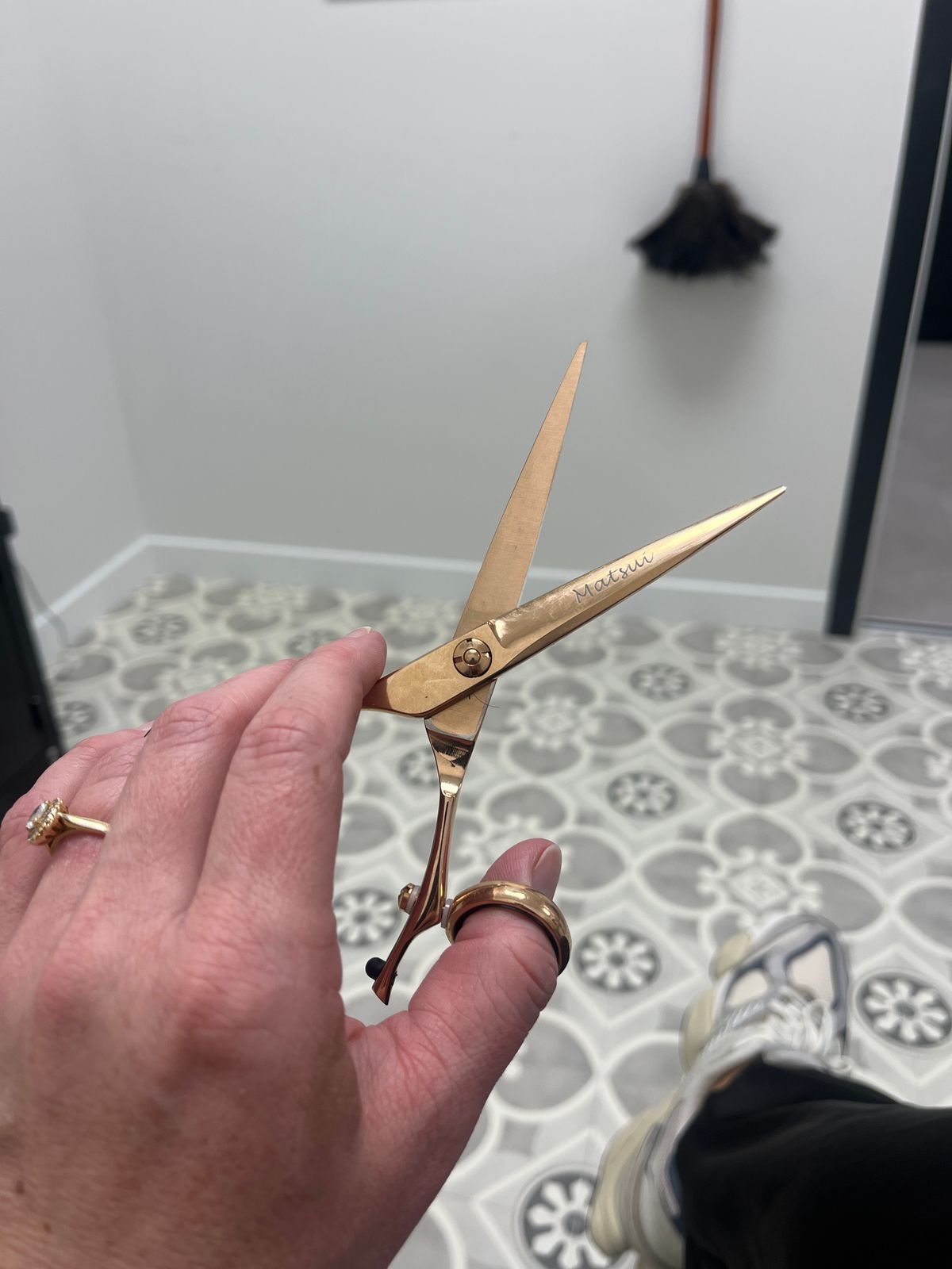 The Matsui Swivel Rose Gold Left Handed Scissors Made from none other than 440C Aichei Steel is like no other set before! If you’re worried about RSI (repetitive strain injury) in your career then look no further than this set. With its offset handle design, the swivel thumb allows full hand open and close motion creating less to no strain whatsoever, secure finger rest.