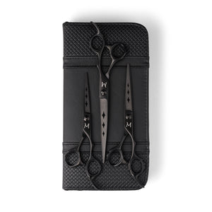 The elegant design of the Matsui Ergo Diamond Matte Black scissors features handles and premium steel that work together to create a lightweight feel, reducing wrist strain and minimizing the risk of RSI or carpal tunnel symptoms. These scissors are precision-engineered with a unique blade angle to ensure hair stays on the tips for smooth, effortless cutting. This design also keeps the blades feeling sharper for longer, making every cut a pleasure.