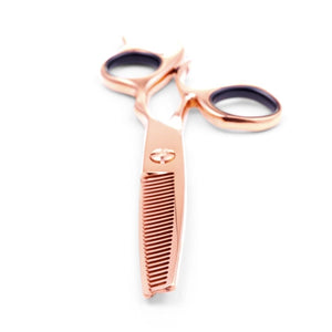 NEW Matsui Rose Gold Super Ergo Devil Thinning Scissors that will have you cutting in not only comfort but devilish style too. With its sleek and ergonomic design, these thinners will give you the confidence every professional should have when it comes to comfort and being able to open and close your hand in a far more natural position.