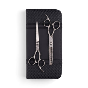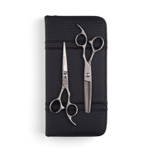 Feel like a rockstar hairdresser with every cut you make with our all new ROCKSTAR combo! Made from none other than the finest Hitachi 440C steel and our coolest design yet, these scissors will leave you feeling ready to rock your next cut every time! We have all lengths covered from 5.5”, 6” and 7” pair with a 6" thinner we’re sure you’ll find your perfect rockin’ match with these bad boys
