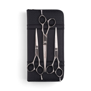 So we’ve got our Classic lightweight scissors but have you heard about our ULTRA lightweight scissors!? These Ultra lightweight cutting and thinning scissors have been hand crafted from Hitachi 440C Steel to make the lightest and most comfortable hair cutting scissors around! Do you suffer from wrist pain or hand fatigue? Well, lucky for you, we’ve brought these guys out for you! You won’t find a triple set this light anywhere else! Give it a try today!