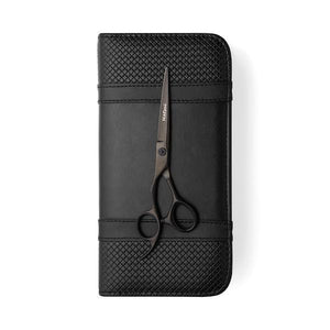 The elegant design of the Matsui Aichei Mountain Matte Black Offset scissors features handles and premium steel that work together to create a lightweight feel, reducing wrist strain and minimizing the risk of RSI or carpal tunnel symptoms. These scissors are precision-engineered with a unique blade angle to ensure hair stays on the tips for smooth, effortless cutting. This design also keeps the blades feeling sharper for longer, making every cut a pleasure.