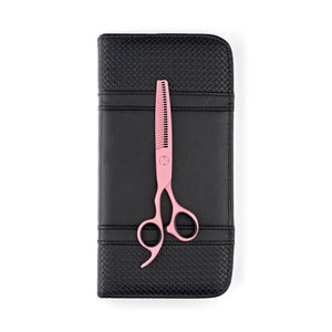 The elegant design of the Matsui Pastel Pink scissors features handles and premium steel that work together to create a lightweight feel, reducing wrist strain and minimizing the risk of RSI or carpal tunnel symptoms. These scissors are precision-engineered with a unique blade angle to ensure hair stays on the tips for smooth, effortless cutting. This design also keeps the blades feeling sharper for longer, making every cut a pleasure.