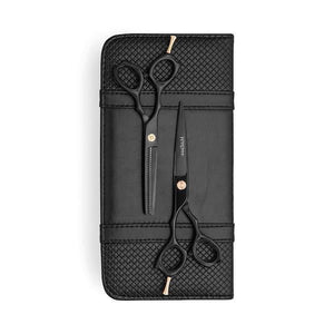 The elegant design of the Matsui Matte Black Precision scissors features handles and premium steel that work together to create a lightweight feel, reducing wrist strain and minimizing the risk of RSI or carpal tunnel symptoms. These scissors are precision-engineered with a unique blade angle to ensure hair stays on the tips for smooth, effortless cutting. This design also keeps the blades feeling sharper for longer, making every cut a pleasure.