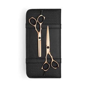 The elegant design of the Matsui Rose Gold scissors features handles and premium steel that work together to create a lightweight feel, reducing wrist strain and minimizing the risk of RSI or carpal tunnel symptoms. These scissors are precision-engineered with a unique blade angle to ensure hair stays on the tips for smooth, effortless cutting. This design also keeps the blades feeling sharper for longer, making every cut a pleasure.