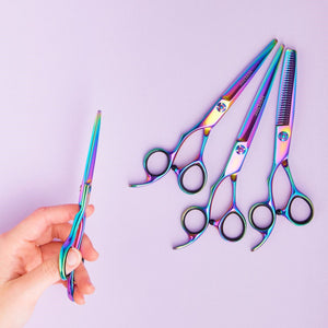 The elegant design of the Matsui Rainbow scissors features handles and premium steel that work together to create a lightweight feel, reducing wrist strain and minimizing the risk of RSI or carpal tunnel symptoms. These scissors are precision-engineered with a unique blade angle to ensure hair stays on the tips for smooth, effortless cutting. This design also keeps the blades feeling sharper for longer, making every cut a pleasure.