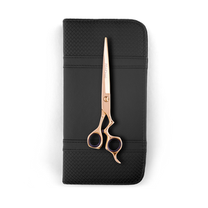 The Matsui Classic Ergo Rose Gold scissors are thoughtfully designed with ergonomic offset handles that naturally position your thumb for maximum comfort. These handles are crafted to suit most hand shapes and sizes, ensuring that 90% of stylists find them incredibly comfortable to use.