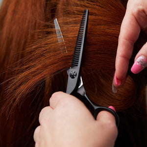 The mountain blade really helps push the hair onto the fine razor sharp cutting edge, while also adding rigidity to the scissors which is great for point cutting, feathering, and texturising.