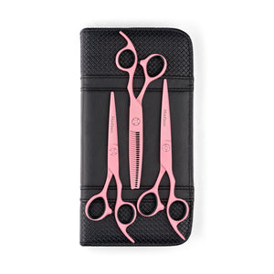 The absolute all new Matsui Pastel Pink Scissors and thinners are here and boy are we inlove!? With the softest most perfect pastel pink colour, it's sure to have you feeling like it's summer all year round. Handcrafted with none other than Hitachi Japanese steel which as we all know is one of the best steels around that performs time and time again. This triple set will be the envy of every hairdresser that sees them.