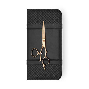 The Matsui Swivel Rose Gold Left Handed Scissors Made from none other than 440C Aichei Steel is like no other set before! If you’re worried about RSI (repetitive strain injury) in your career then look no further than this set. With its offset handle design, the swivel thumb allows full hand open and close motion creating less to no strain whatsoever, secure finger rest.