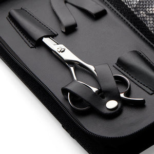 The offset handle in both hair cutting scissors brings the thumb into a natural position for cutting and the solid finger rest can never come loose and get lost. The tension system creates an extra smooth feel to the scissors.