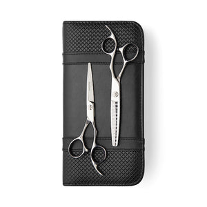 All our scissors come with a life time manufacturing warranty, a Scissor Tech case to protect your scissors, oil, microfiber cleaning cloth and tension adjuster.