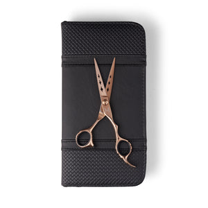 The elegant design of the Matsui Ergo Diamond Rose Gold scissors features handles and premium steel that work together to create a lightweight feel, reducing wrist strain and minimizing the risk of RSI or carpal tunnel symptoms. These scissors are precision-engineered with a unique blade angle to ensure hair stays on the tips for smooth, effortless cutting. This design also keeps the blades feeling sharper for longer, making every cut a pleasure.