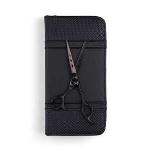 The elegant design of the Matsui Matte Black Diamond Ergo scissors features handles and premium steel that work together to create a lightweight feel, reducing wrist strain and minimizing the risk of RSI or carpal tunnel symptoms. These scissors are precision-engineered with a unique blade angle to ensure hair stays on the tips for smooth, effortless cutting. This design also keeps the blades feeling sharper for longer, making every cut a pleasure.
