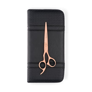 The elegant design of the Matsui Pastel Peach scissors features handles and premium steel that work together to create a lightweight feel, reducing wrist strain and minimizing the risk of RSI or carpal tunnel symptoms. These scissors are precision-engineered with a unique blade angle to ensure hair stays on the tips for smooth, effortless cutting. This design also keeps the blades feeling sharper for longer, making every cut a pleasure.